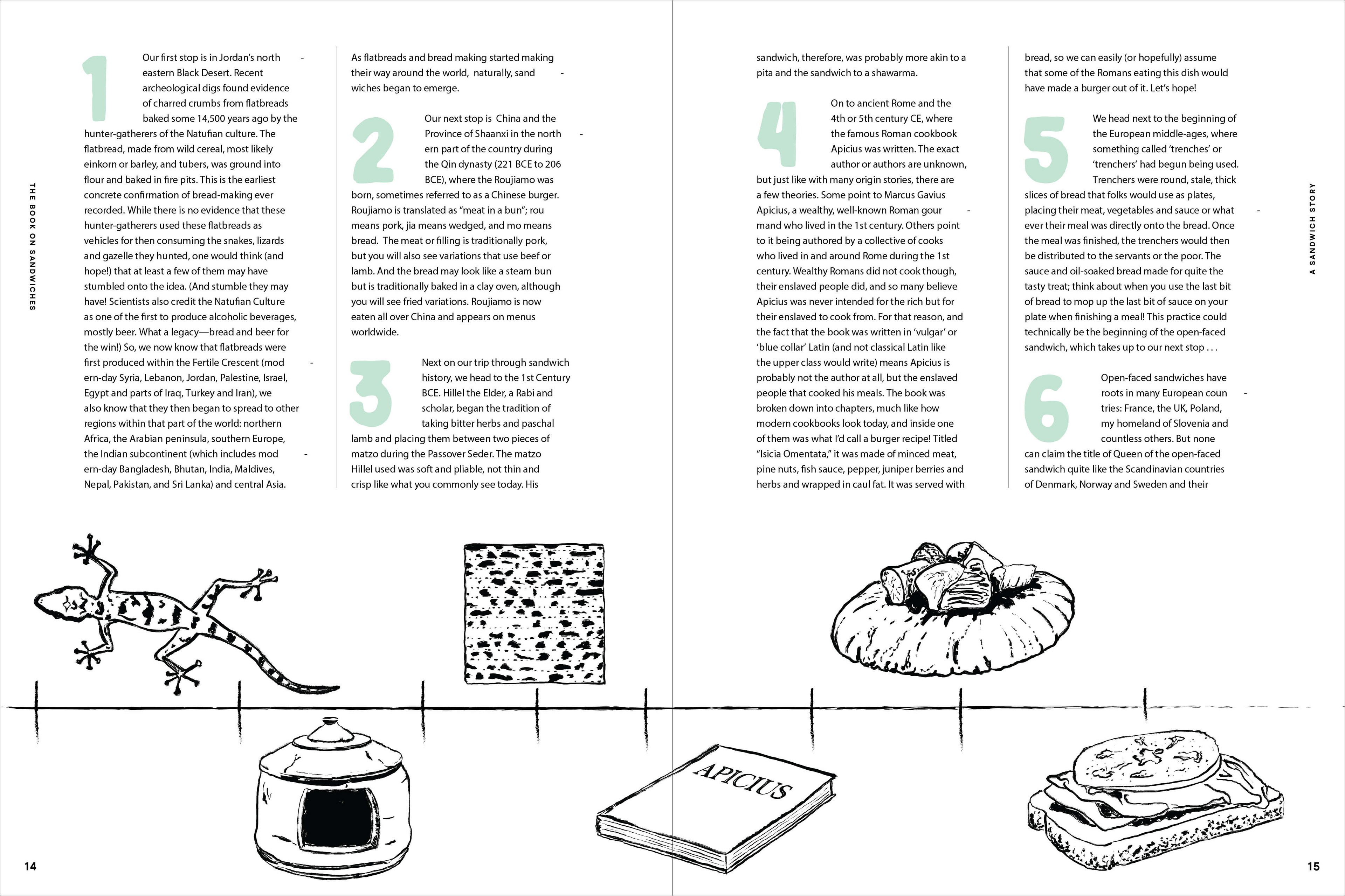 Detailed illustration systems for titles including The Good Catch (Union Square) and The Book on Sandwiches (Penguin Random House).
